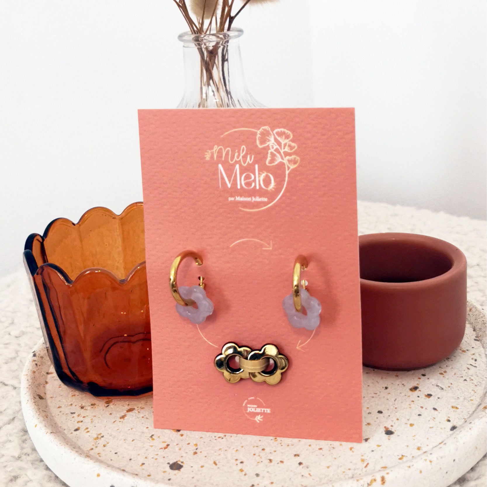 🎁 En choisissant une couleur, vous recevez deux breloques fleurs supplémentaires, dans des coloris "surprise" soigneusement assortis.