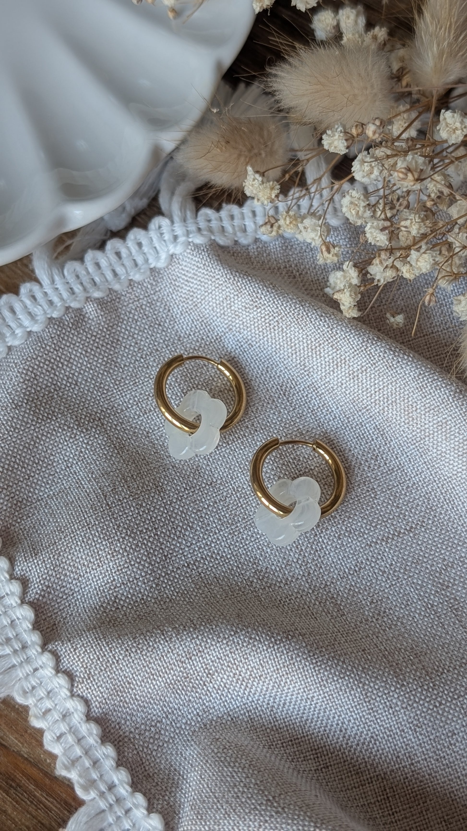 Boucles d'oreilles Méli Mélo "Fleurette" - Blanc transparent