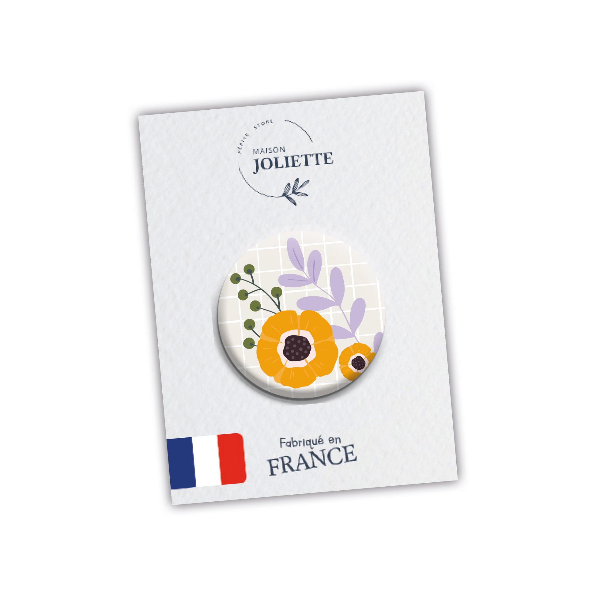 Maison Joliette-Abzeichen werden aus umweltfreundlichem Papier hergestellt und mit hochwertigen Tinten auf pflanzlicher Basis bedruckt, um die Umwelt nur begrenzt zu belasten.