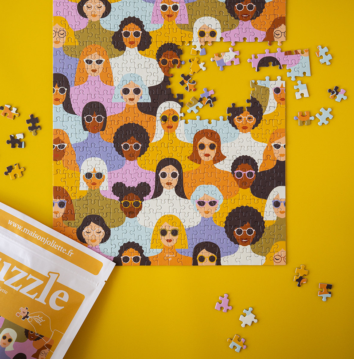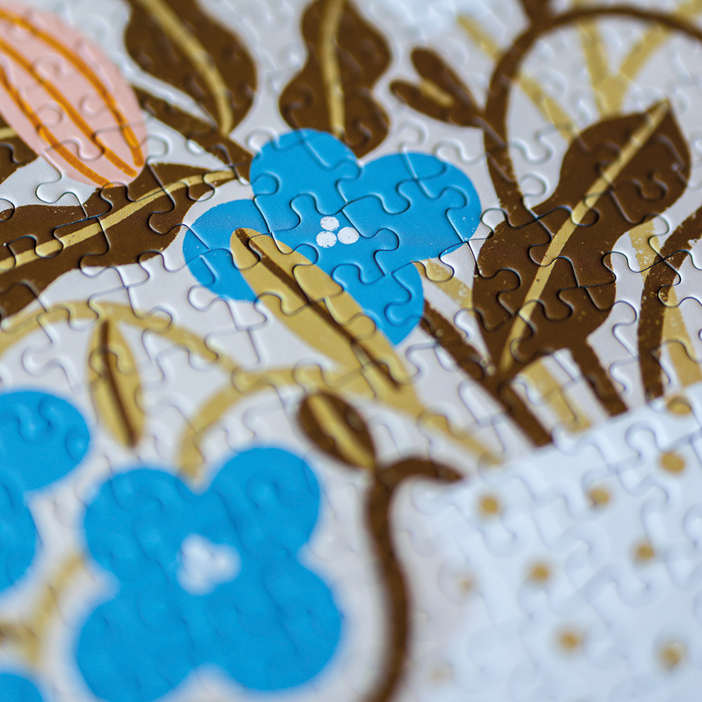 À l’origine, il y a donc cette idée de créer mon propre puzzle, une pièce sur-mesure, avec cette envie de rafraîchir l’image de ce jeu souvent mal considéré et boudé. S’ensuit la quête d’un fabricant français et compétent, partant pour m’accompagner dans cette aventure, et de matériaux de qualité et respectueux de l’environnement. Une fois trouvés, c’est un nom dont il faut se doter. Ce sera Maison Joliette ! Un lieu chaleureux où on aime enjoliver les choses un peu désuètes. Puis, avec le temps, une ambition plus grande se dessine et m’anime, au-delà des frontières de l’univers du puzzle : faire du beau, autant que possible. Les motifs et les couleurs investissent alors d’autres objets. Une jolie illustration pour de jolies déclinaisons, en voilà un chouette concept, pour un nouveau concept store ! Les bases sont jetées : le pépite store Maison Joliette est né.